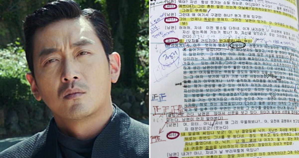 하정우가 공개한 대본은 그의 성공 비결을 보여주는 듯했다. 그는 대본에 줄 몇 개를 긋는 것이 아니라 감정 하나하나를 손으로 써가며 메모했다.