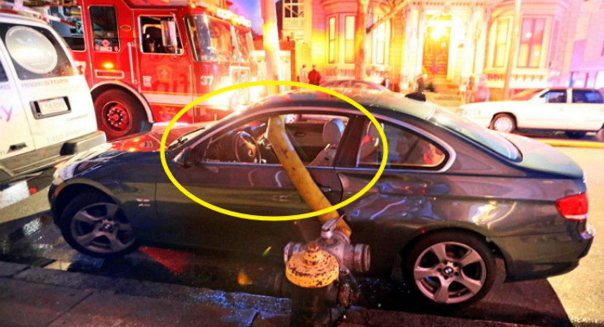 화재 진압을 위해 소방차 호스와 물이 나오는 소화전을 연결해야 하는데, 그 앞을 BMW가 막고 있자 한 치의 망설임도 없이 창문을 깨트린 것이다.