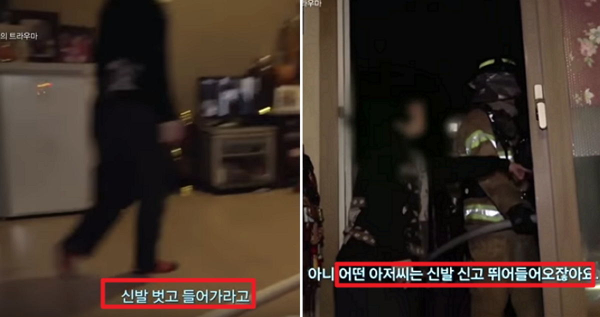 한 소방관이 집주인을 진정시키려 "신발 안 신고 들어왔어요"라고 하자 집주인은 아랑곳하지 않고 "아니 어떤 아저씨는 신발 신고 뛰어들어오잖아요 지금"이라고 받아친다.