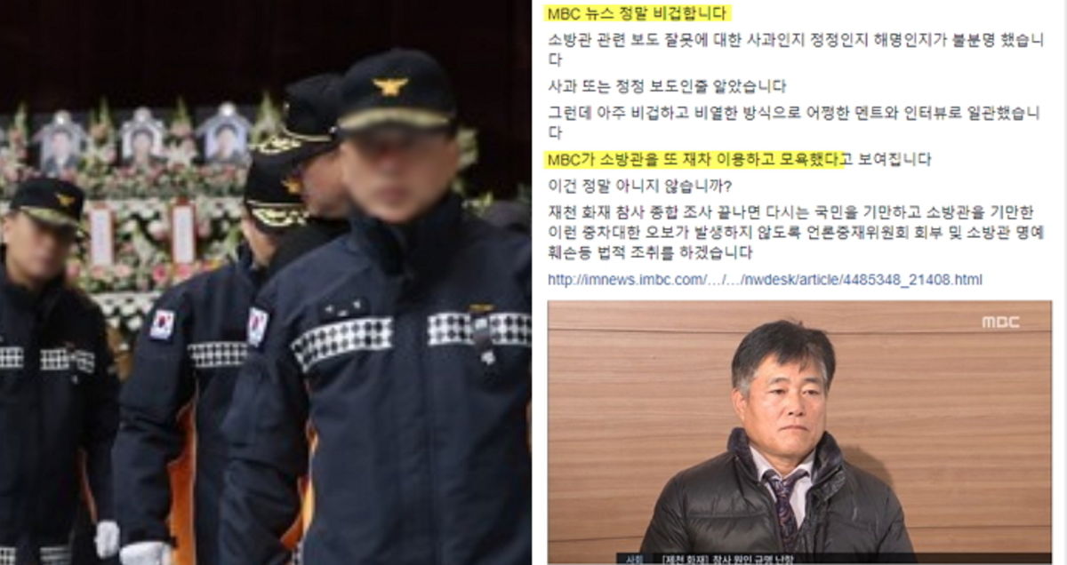 하지만 해당 소방관은 현장을 지휘하는 사람이었고 MBC를 향한 전·현직 소방관들의 질타가 쏟아졌다.