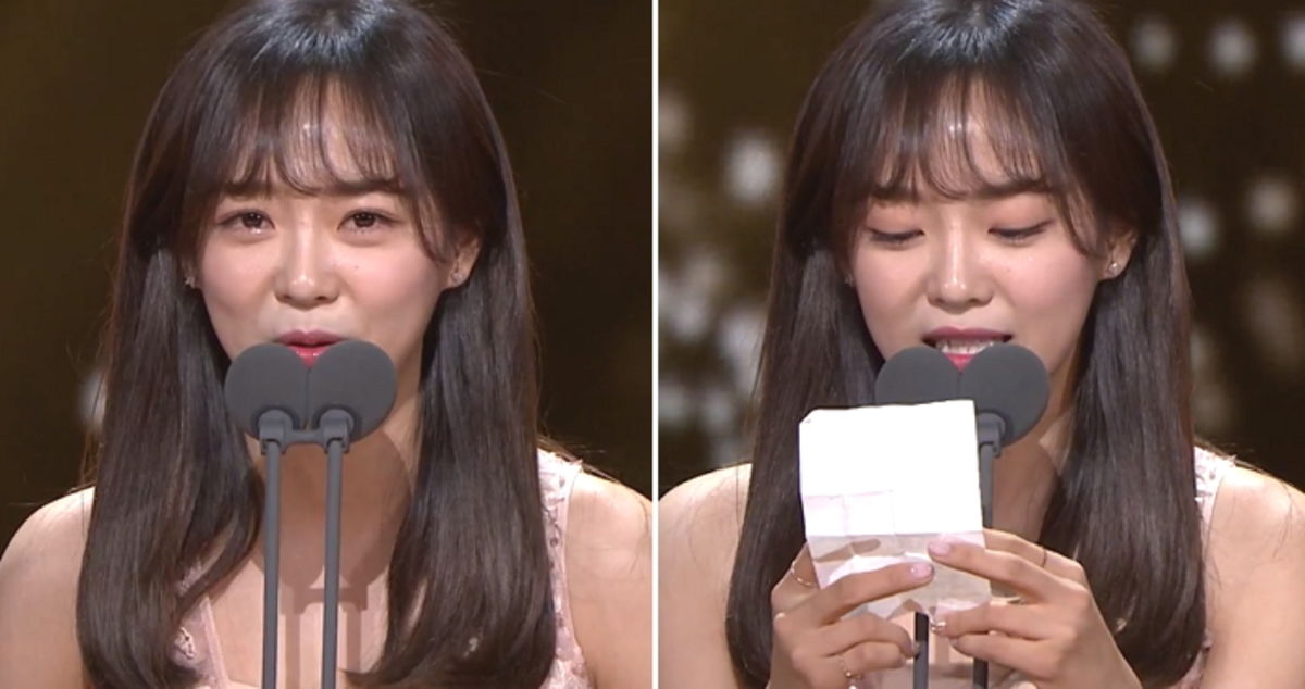 이날 김세정은 주섬주섬 미리 준비해온 쪽지를 꺼내면서 "마이크 앞에만 서면 많이 떨어 중요한 사람 까먹을까봐 손에 쥐고 있었다"며 "그 종이를 펼칠 수 있게 해줘 감사하다"고 말했다.