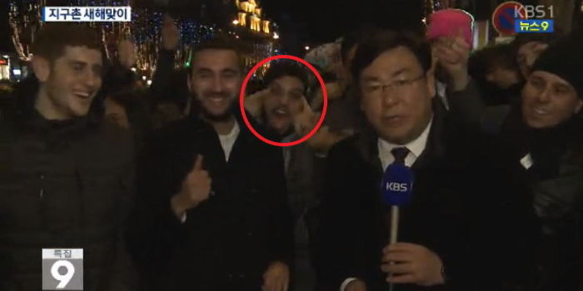 어떤 시민은 진행을 이어가는 특파원에게 다가와 마이크에 대고 "해피 뉴 이어"라고 소리치기도 한다.