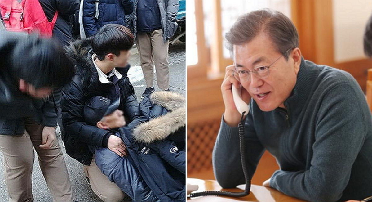문 대통령은 이날 가장 먼저, 혹한에 정신을 잃고 쓰러진 할아버지를 집까지 모셔다 준 전농중 1학년 엄창민, 신세현 군과 2학년 정호균 군과 통화했다.