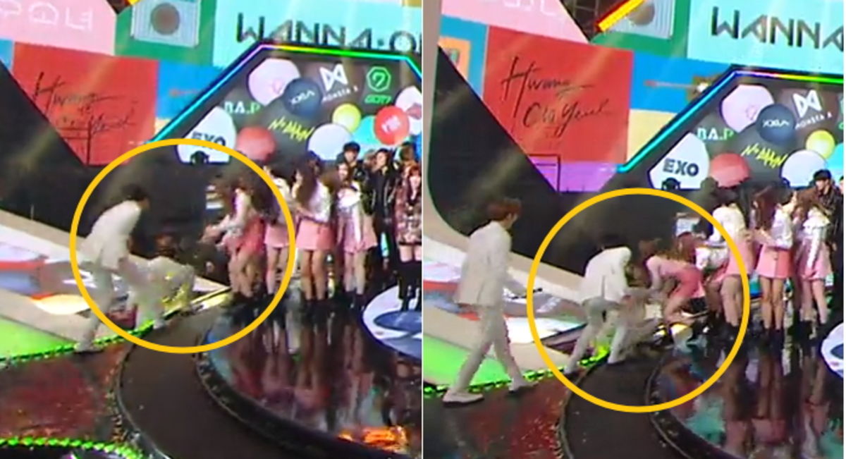 다행히 이를 본 세븐틴 멤버들과 근처에 있던 프리스틴 멤버들이 즉시 정한을 붙잡아 큰 사고는 면했다.