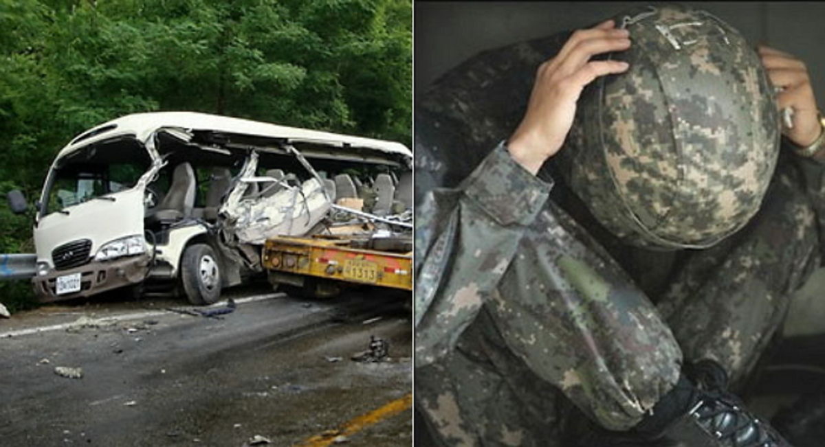 2일 오후 5시 30분께 강원 양구군 광산면 지방도로에서 모 사단 소속 신병 20여 명을 태운 미니버스가 20m 아래 계곡으로 추락했다.