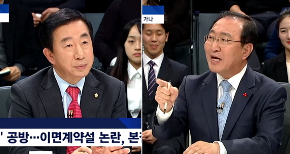 이처럼 양 원내대표 사이에 공격적인 발언들이 이어지자 사회를 맡은 손석희 앵커는 양쪽에 그만하라는 제스처를 보였다.