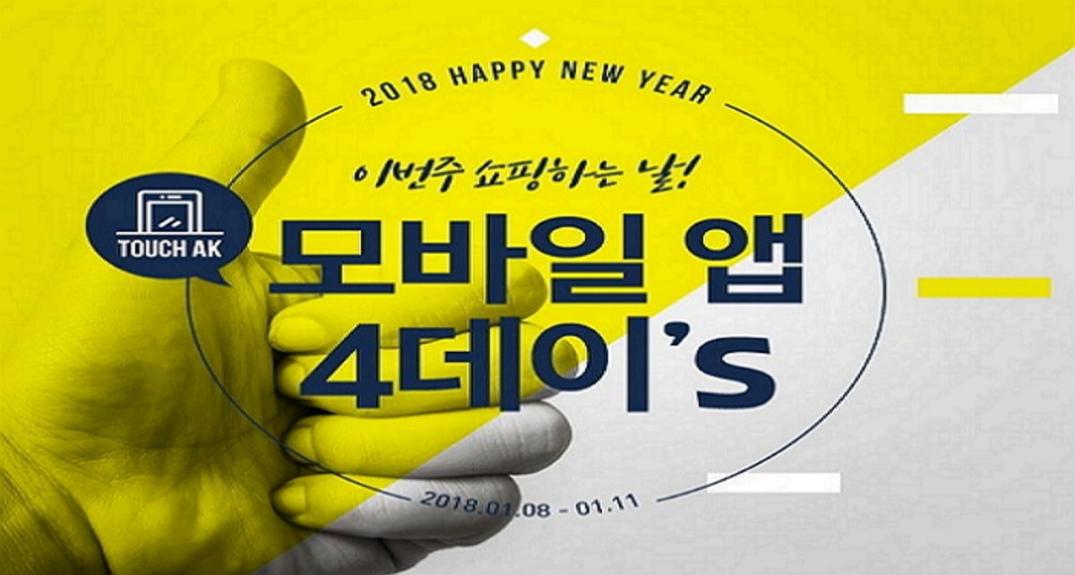 8일부터 11일까지 AK몰에서 '2018 신년 맞이 모바일앱 4데이즈'기획전이 열려 겨울 상품과 신학기 준비 상품을 최대 50% 할인된 가격으로 만나볼 수 있다.