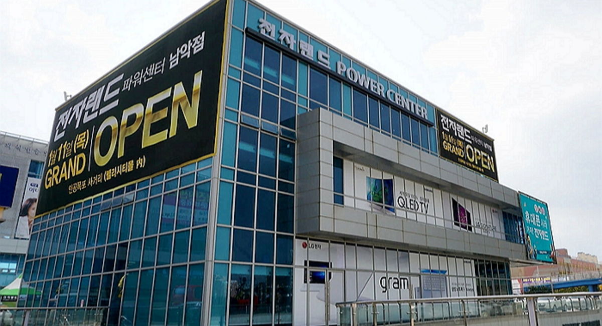 전자랜드 파워센터 남악점은 지상 3층, 지하 1층의 총 540여 평 규모의 대형매장이다.