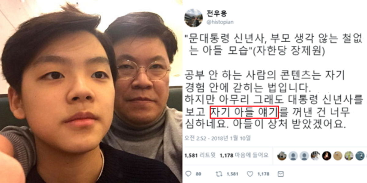 하지만 아무리 그래도 대통령 신년사를 보고 자기 아들 얘기를 꺼낸 건 너무 심하네요. 아들이 상처 받았겠어요.