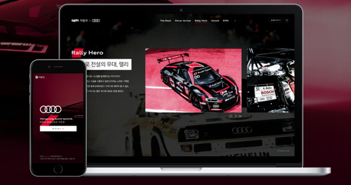 전시 페이지는 총 10개 장으로 나뉘어 아우디가 모터스포츠에서 이어온 진보의 역사를 서술한다.