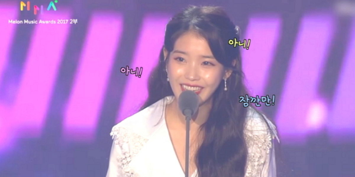 대상 수상 당시 아이유는 '음원'과 '음악'을 헷갈려 하며 소감 도중 "아니, 잠깐만, 아니"라고 외쳤다.