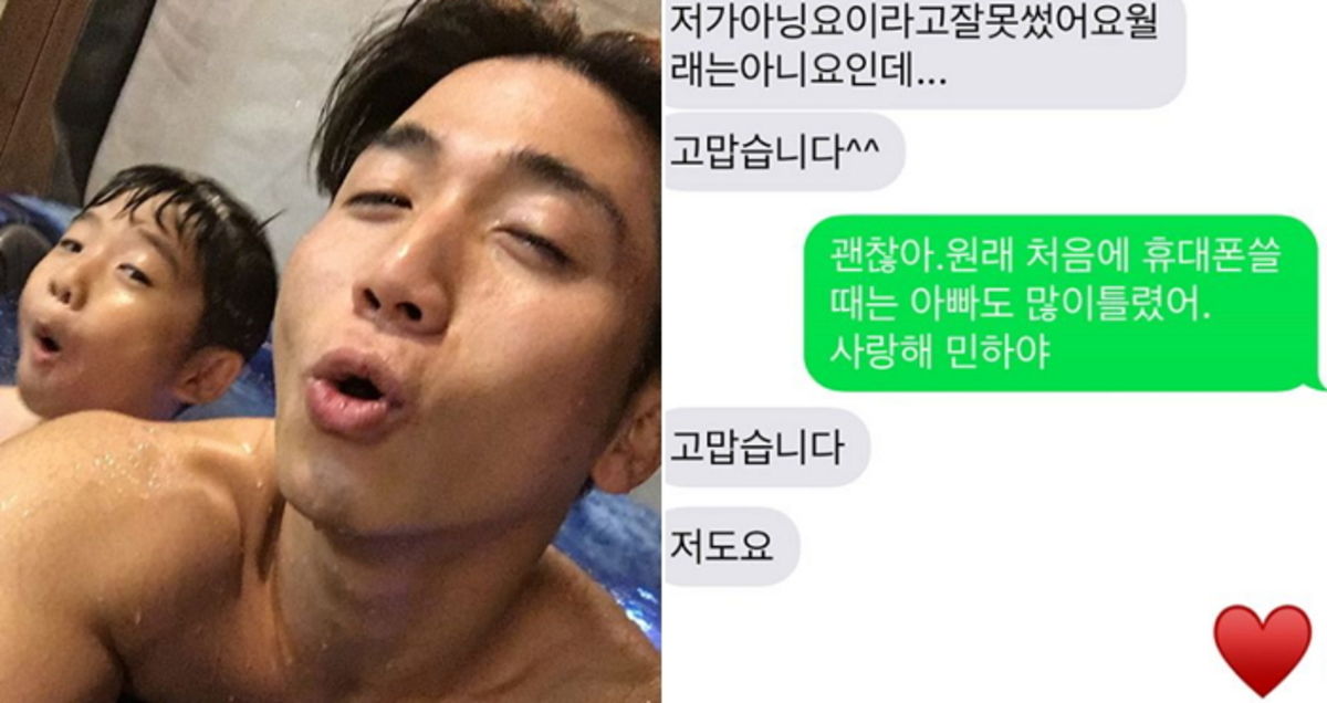 지난 17일 코미디언 유세윤은 본인 SNS에 아들 민하 군과 나눈 문자 캡처 화면을 공개했다.