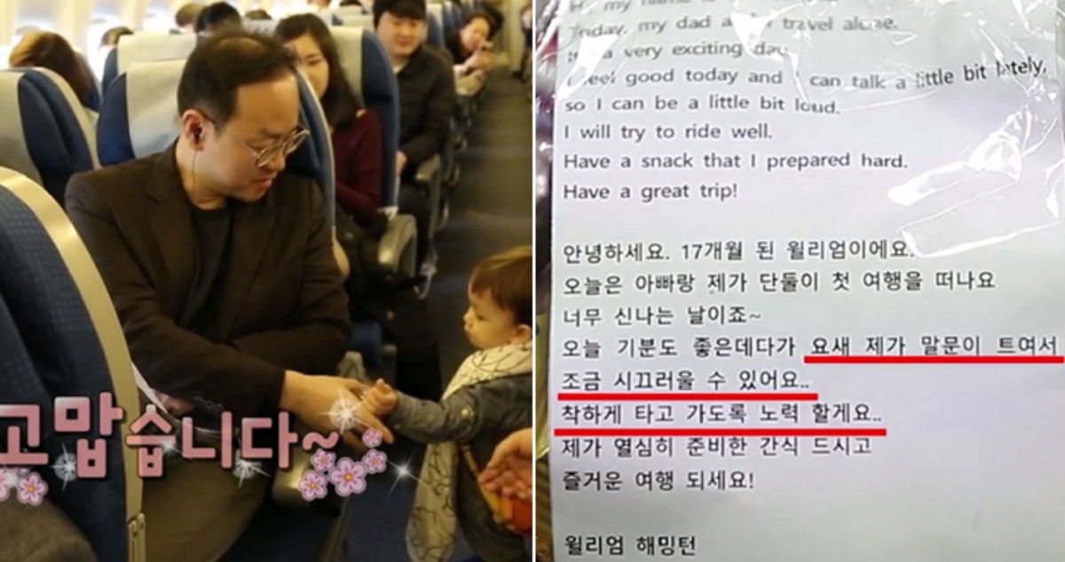 아직 어린 윌리엄이 울거나 시끄럽게 떠들 경우를 대비해 미리 승객들에게 양해를 구하며 조그마한 성의를 표시하는 것이다.
