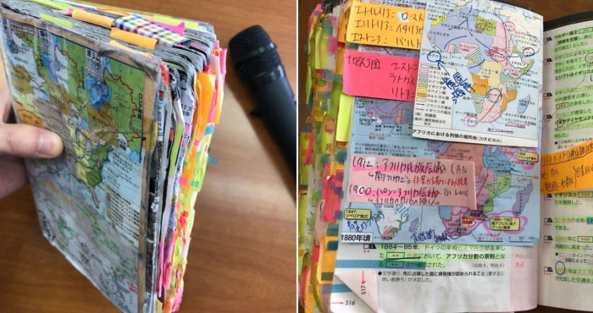 얼마나 열심히 공부했는지 한눈에 봐도 알 수 있을 정도다. 이 학생은 결국 대입 시험에서 세계사 만점이라는 보상을 받았다.