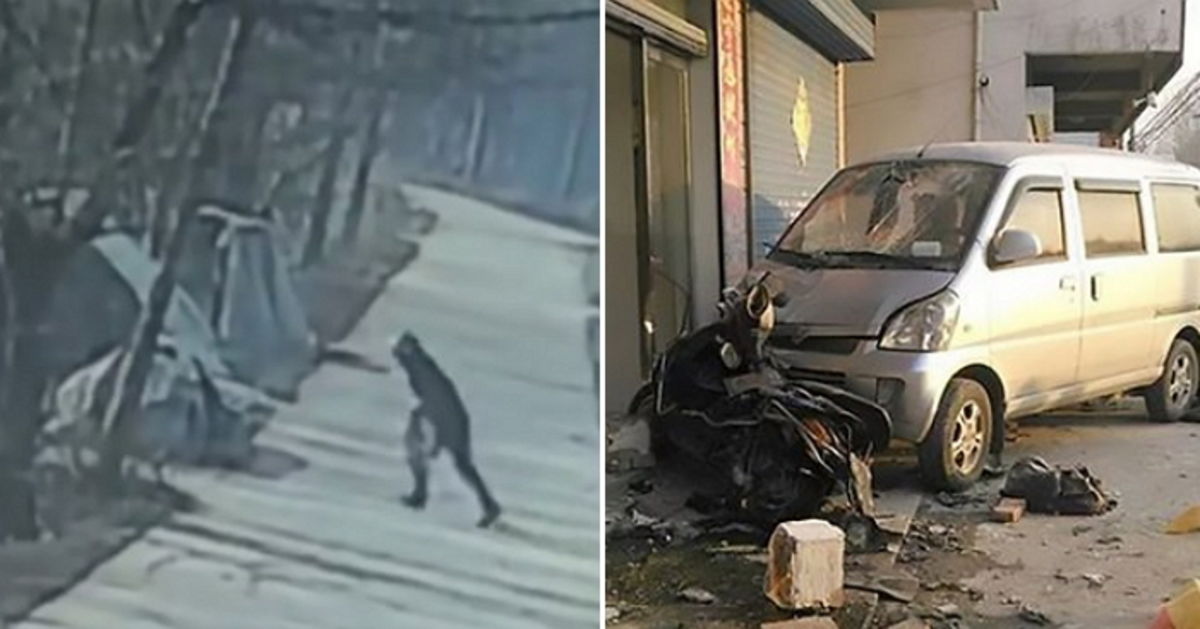 견주가 타고 있던 차량이 용의자의 오토바이를 들이받아 버린 것이다. 범인은 차량과 건물 사이에 껴 그 자리에서 숨을 거두고 말았다.