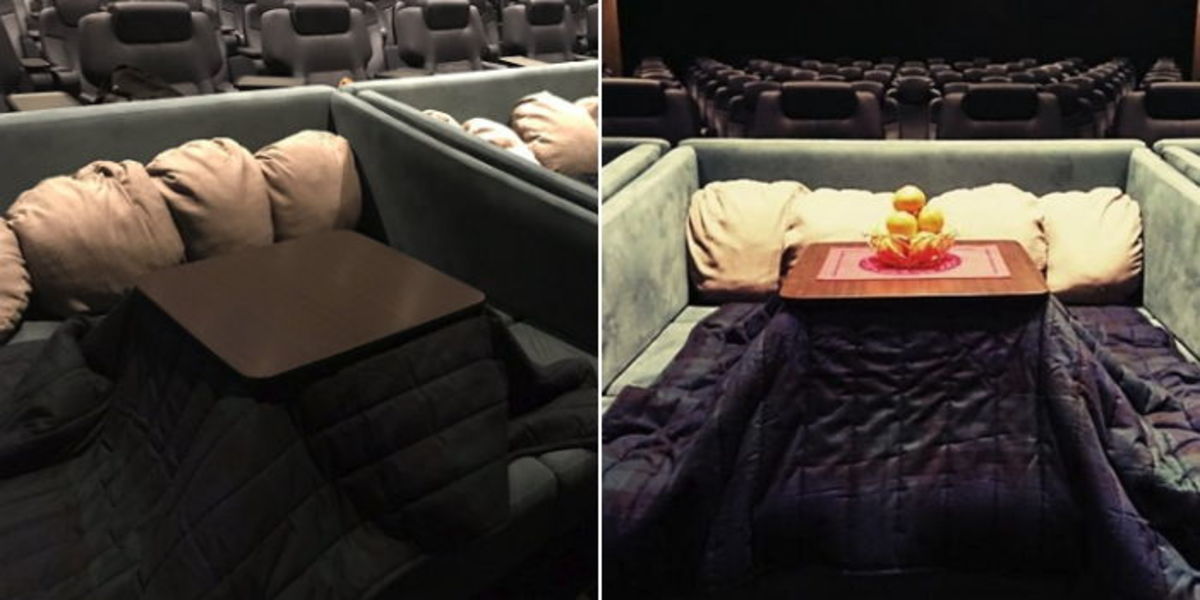 최근 한 일본인 트위터 사용자는 일본 전통 난방 장치인 '코타츠'가 놓인 영화관 사진을 게시했다.