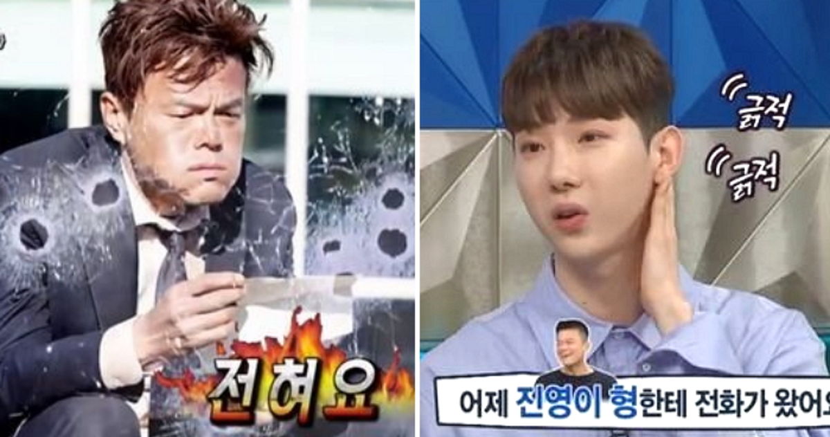 이어 조권은 "소속사를 옮길 때 박진영 선배님과 식사를 했었는데. 한 시간동안 JYP 신사옥에 대해서 설명하셨다. 유기농으로 전부 건설한 건물이라고 자랑하셨다"고 말하며 고개를 저어 웃음을 자아냈다.