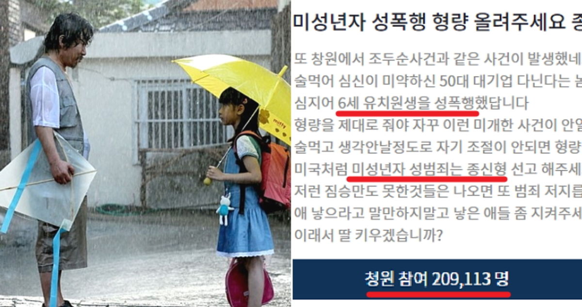 지난 3일 청와대 국민청원 게시판에는 '미성년자 성폭행 형량을 올려주세요. 종신형을 원합니다'라는 제목의 청원이 올라왔다.