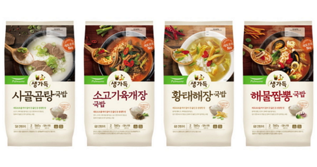 이번에 출시된 '생가득 냉동국밥 6종'은 '사골곰탕국밥', '소고기육개장국밥', '황태해장국밥', '해물짬뽕국밥' 등 봉투 타입 4종과 '사골곰탕국밥', '소고기육개장국밥' 등 용기 타입 2종이다.