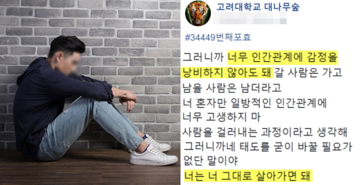 지난 25일 페이스북 페이지 '고려대학교 대나무숲'에 올라온 익명의 글이 수많은 누리꾼들의 공감을 얻고 있다.