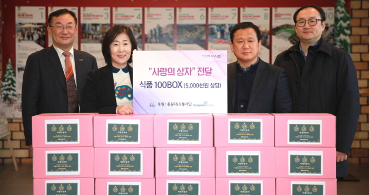 26일 동원F&B은 직원들이 직접 만든 '사랑의 나눔상자' 100상자를 서초구청에 전달했다고 밝혔다.
