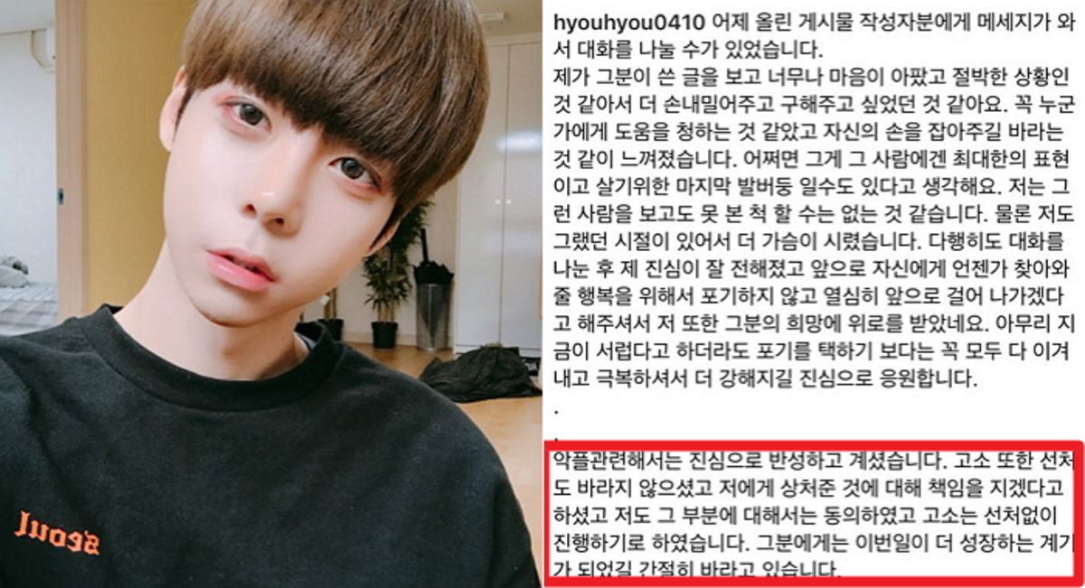 그는 "(A씨가) 악플 관련해서 진심으로 반성하고 계셨다"면서 "고소 또한 선처도 바라지 않고 상처 준 것에 대해 책임을 지겠다고 하더라"라고 했다.