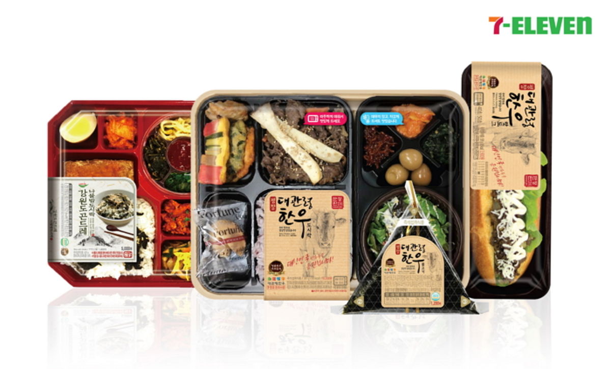 세븐일레븐은 평창 대관령 한우와 정선 곤드레 나물 등 강원도의 대표 특산물을 담은 '평창 대관령 한우 도시락'과 '평창 대관령 한우 삼각김밥', '평창 대관령 한우 핫도그', '강원도 곤드레나물밥 도시락' 등 총 4종을 선보인다.