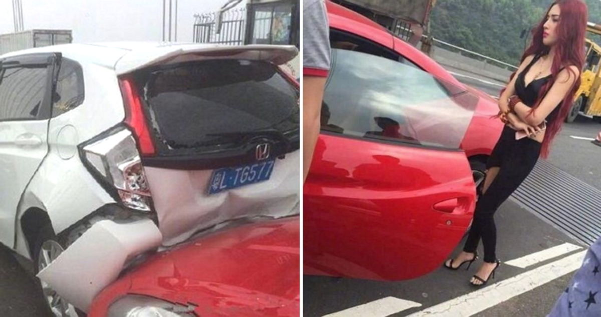 미모의 여성 운전자를 발견한 남성은 접촉사고를 당하고도 오히려 상대방의 상태를 먼저 확인했다.