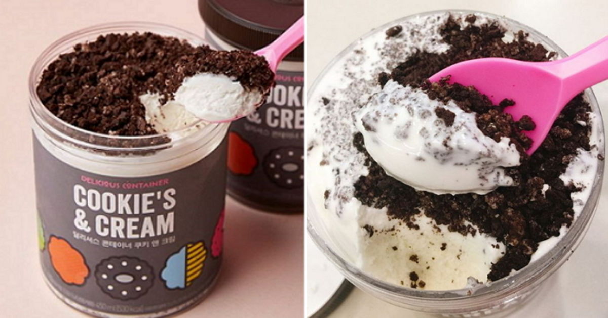 '딜리셔스콘테이너 쿠키앤 크림'은 새하얀 아이스크림 위에 달콤한 쿠키조각들이 가득 뿌려진 비주얼 만으로도 시선을 사로잡는다.