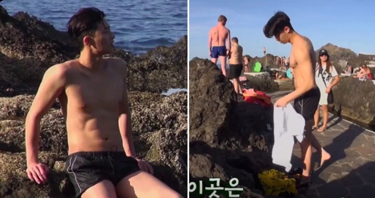 잠시 몸을 녹이기 위해 돌에 걸터앉아 햇볕을 쬐는 박서준은 앉아 있어도 선명한 초콜릿 복근을 유지해 눈길을 끌었다.