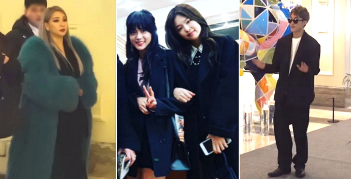 YG엔터테인먼트의 막내 걸그룹 블랙핑크 멤버들은 모두 검정 코트에 스커트를 입고 20대의 깜찍함을 선보였다.