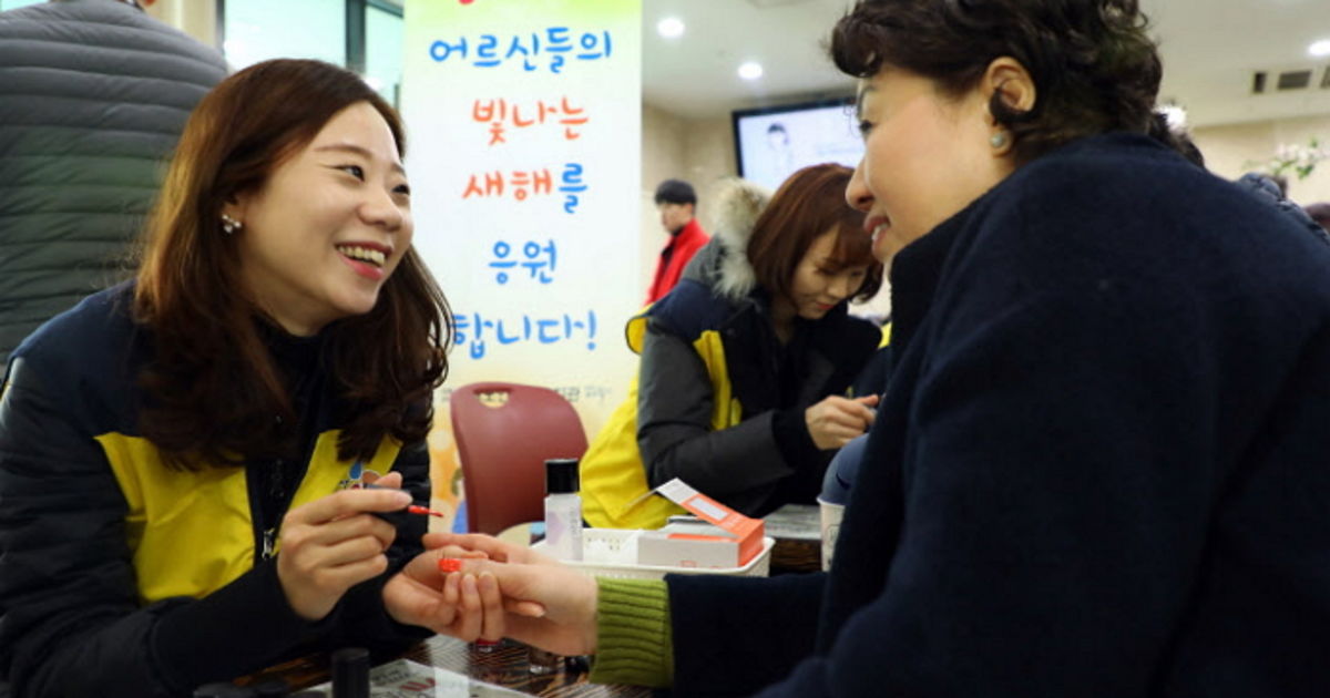 [인사이트] 황비 기자 = CJ오쇼핑이 네일케어와 구두닦이 등 어르신들의 '새해맞이 이미지 변신'을 도와드리는 이색 봉사활동을 진행했다.