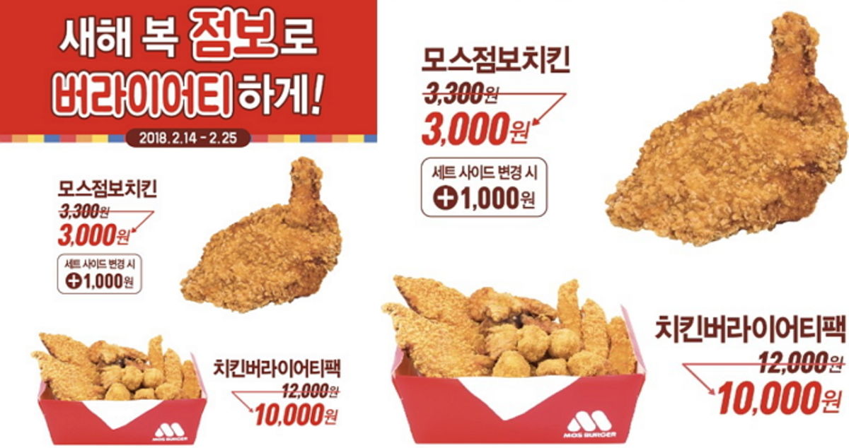 [인사이트] 장영훈 기자 = 아시아 대표 프레시버거 브랜드 모스버거가 무술년 첫 명절인 설을 맞아 치킨 사이드 메뉴 할인 이벤트를 진행한다.