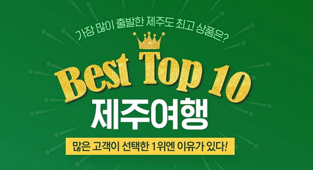 이번에 선보이는 '제주여행 BEST TOP10' 기획전 대표 상품으로는 왕복 항공+숙박+버스 패키지 3일(11만6000원부터), 베스트웨스턴 제주호텔+렌터카 3일(16만원부터), 제주신라호텔(19만370원부터), 왕복 항공+롯데호텔 3일(22만1600원부터) 등이 있다. 이 외에도 고객 선호가 높은 다양한 상품을 준비했다.