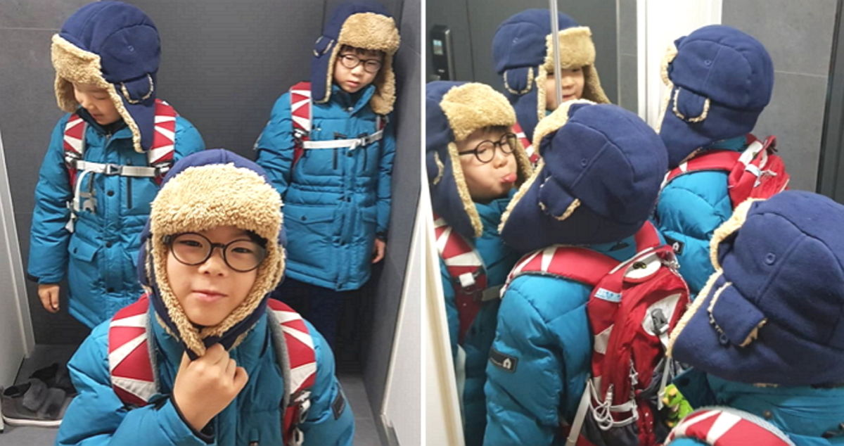 추운 날씨에 귀가 꽁꽁 시려울 것을 대비해 털모자를 썼다. 도톰한 패딩점퍼를 입고 각자 가방도 야무지게 맨 모습이 이제 제법 어린이 같은 느낌이다.