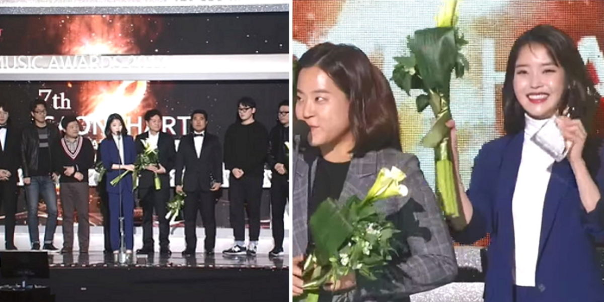 이후 아이유와 10년간 동고동락한 매니저, 스타일리스트 등이 차례로 마이크 앞에 서서 수상 소감을 전했다.