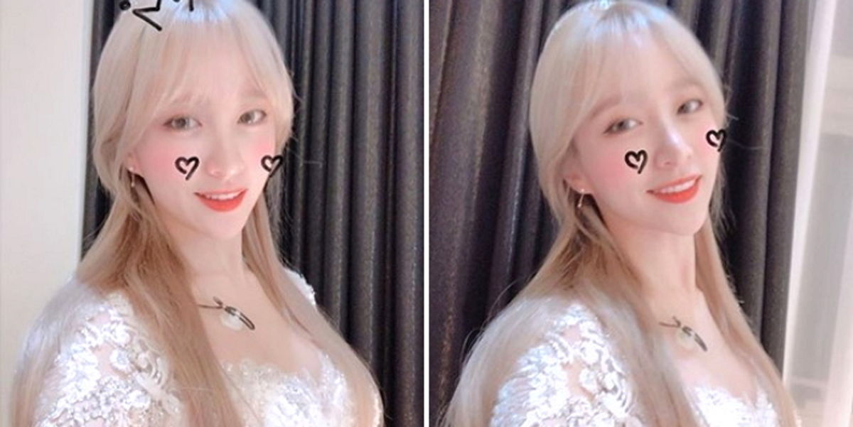 공개된 사진 속 하니는 금발에 순백의 웨딩드레스를 입고 있다.