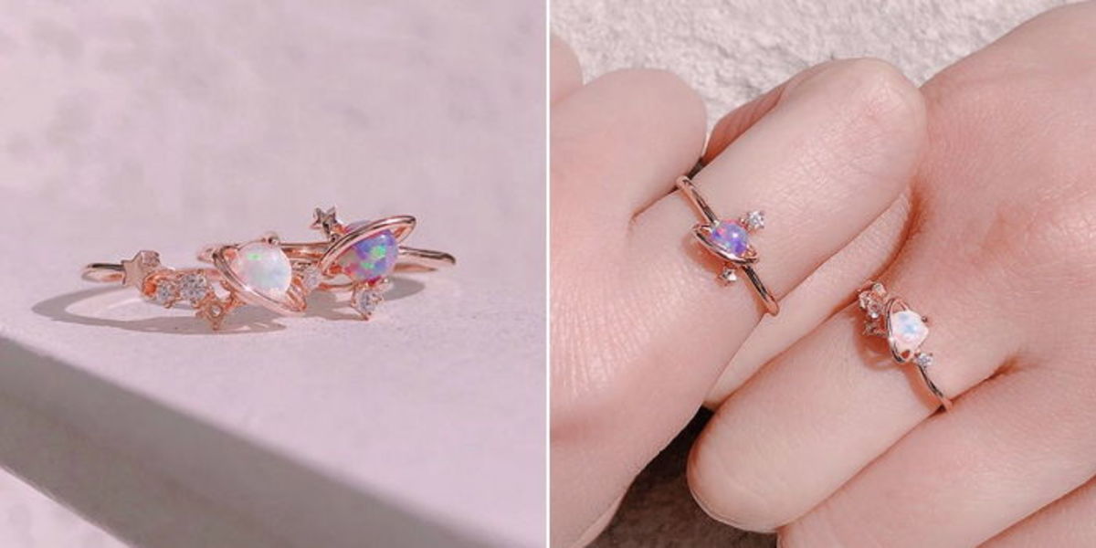 행성을 떠올리게 하는 소원 반지는 신비로운 색감의 스톤으로 보는 이의 시선을 사로잡는다.