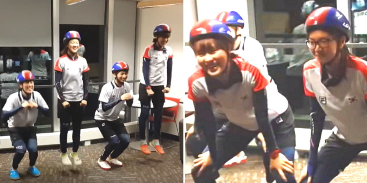 영상에는 쇼트트랙 대표팀 막내 김아랑, 심석희, 박세영, 공상정, 심다운 선수가 헬멧과 유니폼을 맞춰 입고 등장한다.