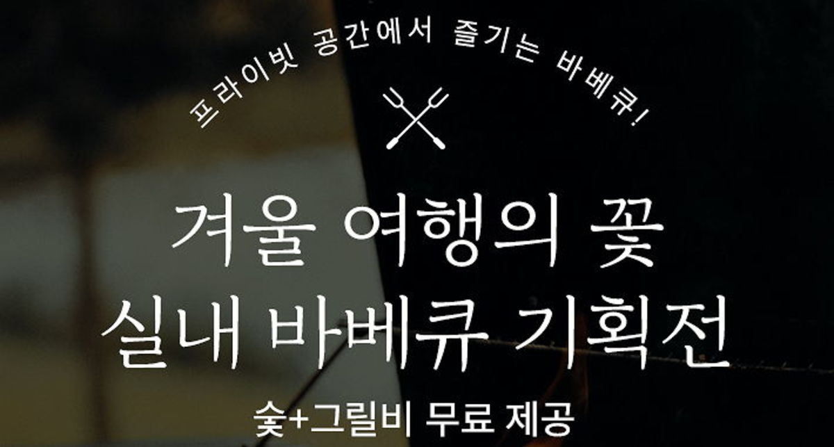 국내 1위 종합숙박 여기어때와 호텔타임커머스 서비스 호텔타임은 경기, 경상, 강원지역 인기 펜션 10여 곳을 모아 숙소 예약 시 바비큐 시설 무료 이용 혜택을 주는 '겨울 여행의 꽃 실내 바비큐 기획전'을 실시한다.
