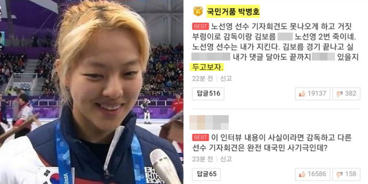 [인사이트] 이소현 기자 = 여자 팀 추월 경기에서 마지막 주자인 노선영을 남겨두고 결승선에 먼저 들어온 김보름 선수에게 악플을 예고하는 누리꾼이 등장했다.