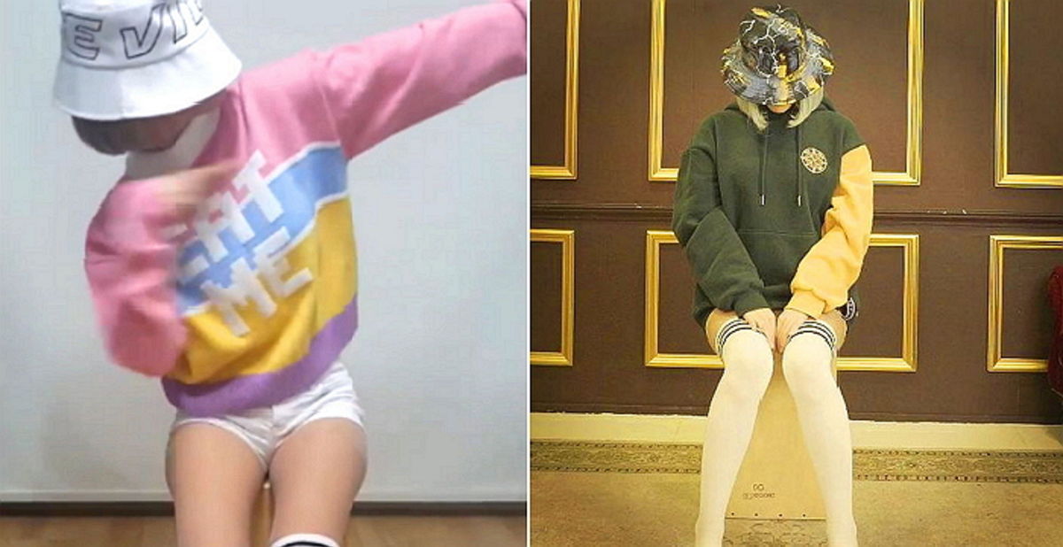 의상 또한 독특했다. 얼굴이 다 가려지도록 벙거지 모자를 푹 눌러 쓰고, 스툴에 앉은 채 오버 니삭스를 신은 모습이다.
