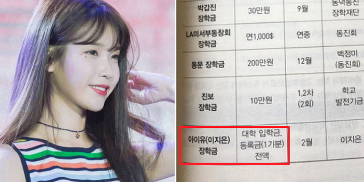 해당 사진 속 동덕여고의 교내 장학금 란에는 아이유(이지은) 장학금이 표기돼 있다.