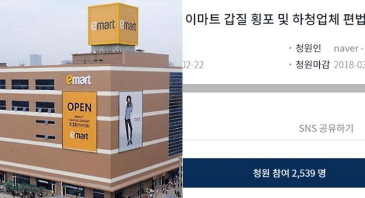대형 마트의 갑질과 하청업체의 횡포를 고발한 국민 청원이 분노와 안타까움을 자아냈다.