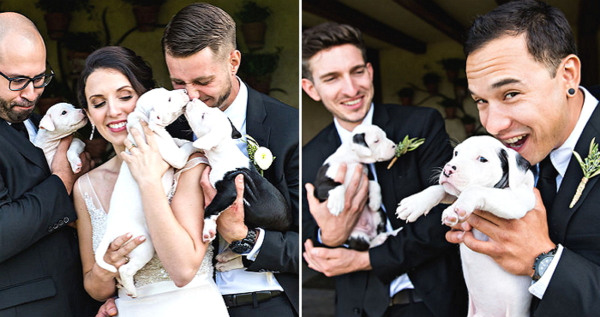 결혼식 날 신랑, 신부의 친구들은 귀여운 아기 강아지들을 한 마리씩 품에 안고 친구의 결혼을 축하했다.