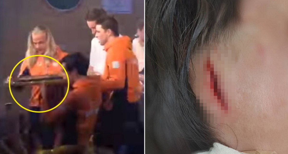 지난 22일 새벽 강릉 라카이 리조트의 홀란드 하이네켄 하우스에서 네덜란드 스피드스케이팅 대표팀이 던진 상패에 맞아 한국인 두 명이 크게 다쳤다.