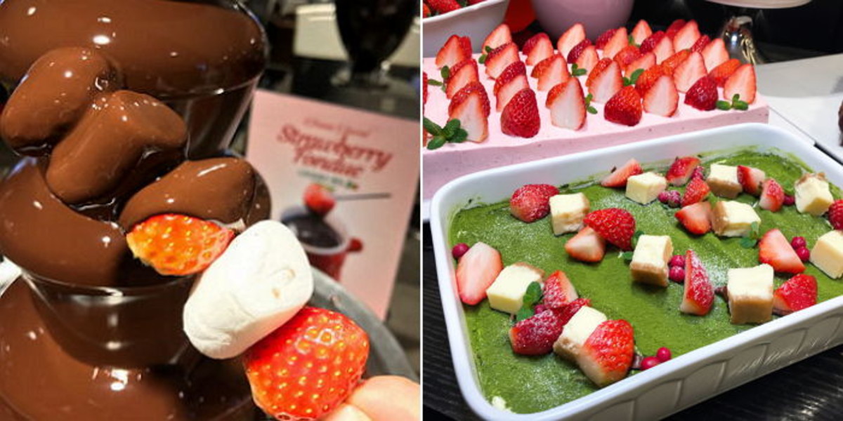 이번 딸기 축제에서 가장 별미로 꼽히는 '초코퐁듀분수'도 있다. 마시멜로와 딸기 등 원하는 재료를 스틱에 끼워 초코 분수에 찍어 먹을 수 있다.