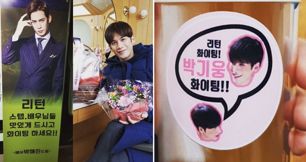 소속사 마운틴무브먼트 관계자는 "박해진이 드라마 '사자'와 영화 '치즈인더트랩' 홍보로 바빴고, 박기웅도 '리턴' 촬영으로 만날 시간을 정하지 못했다"며 "박기웅의 생일을 직접 챙기지 못한 걸 안타깝게 여겨 커피차를 선물하게 됐다"고 말했다.