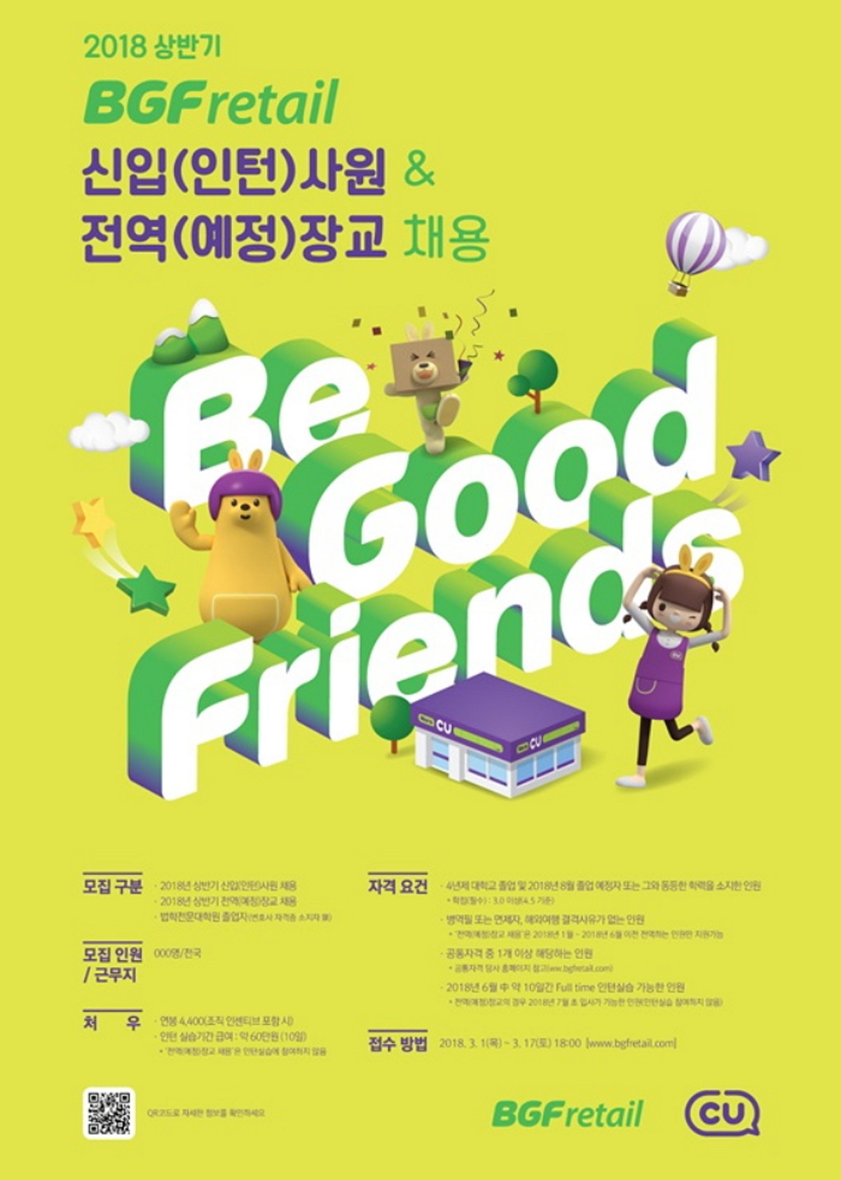 [인사이트] 정형인 기자 = 글로벌 편의점 기업으로 나아가는 BGF리테일이 3월 1일부터 2018년 상반기 신입사원 채용문을 연다.
