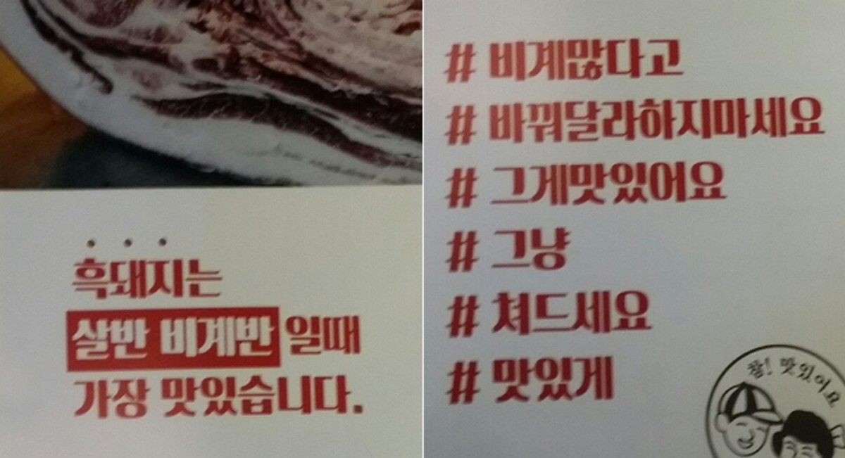 [인사이트] 최민주 기자 = 한 유명 고깃집에 적힌 과격한 말투의 홍보문구가 눈살을 찌푸리게 하고 있다.